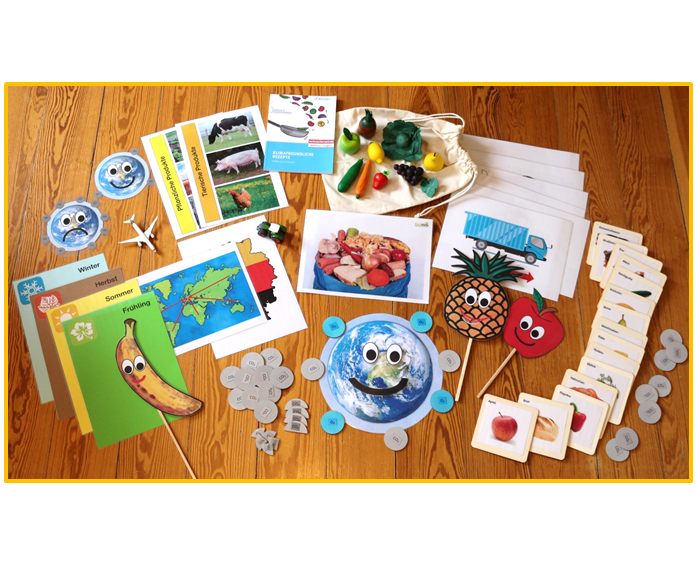 - Bereitstellung einer Materialkiste zur Gestaltung einer Projektwoche zum Thema „Klimafreundliche Ernährung“ für einen Zeitraum von bis zu drei Wochen.