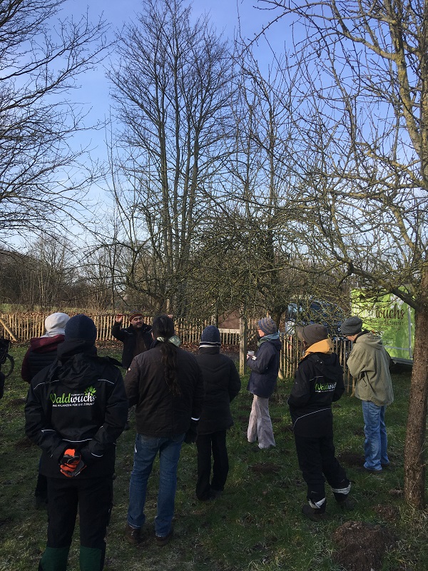 … einfach mal wieder als Baum entspannen! Am Samstag bekam ein Teil der 50 Obstbäume auf der Arboretumsfläche einen revitalisierenden Verjüngungsschnitt! Die zwölf Teilnehmenden des professionell durch die Baumschule Ceban angeleiteten Baumschnittkurses waren sehr motiviert dabei und kamen schon nach kurzer Zeit ins schwitzen. Verwachsene, dichte Obstbäume, welche seit Jahren keine Pflegeschnitte bekommen, haben extremen Stress! Die Bäume bilden daher Unmengen an kleinen Früchten und Samen aus, in der Hoffnung auf Reproduktion. Dieser Dauerstress sorgt für eine regelrechte “Vergreisung” der Obstbäume, sie altern schneller. Durch den Pflegeschnitt wird die Vitalität der Obstbäume gestärkt, diese tragen zwar zukünftig weniger, dafür aber größere und leckerere Früchte. Ohne diesen Pflegeschnitte erreichen Obstbäume selten ein Alter von 120 Jahren.